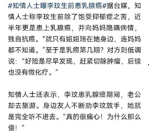 那么,这个视频背后的真相究竟是什么呢?据知情人透露,这段视频是在李玟参加某综艺节目期间拍摄的。当时,李玟因为工作原因,压力很大,心情也不是很好。而这段视频,正是她在放松心情、与朋友倾诉时无意间被拍下的。